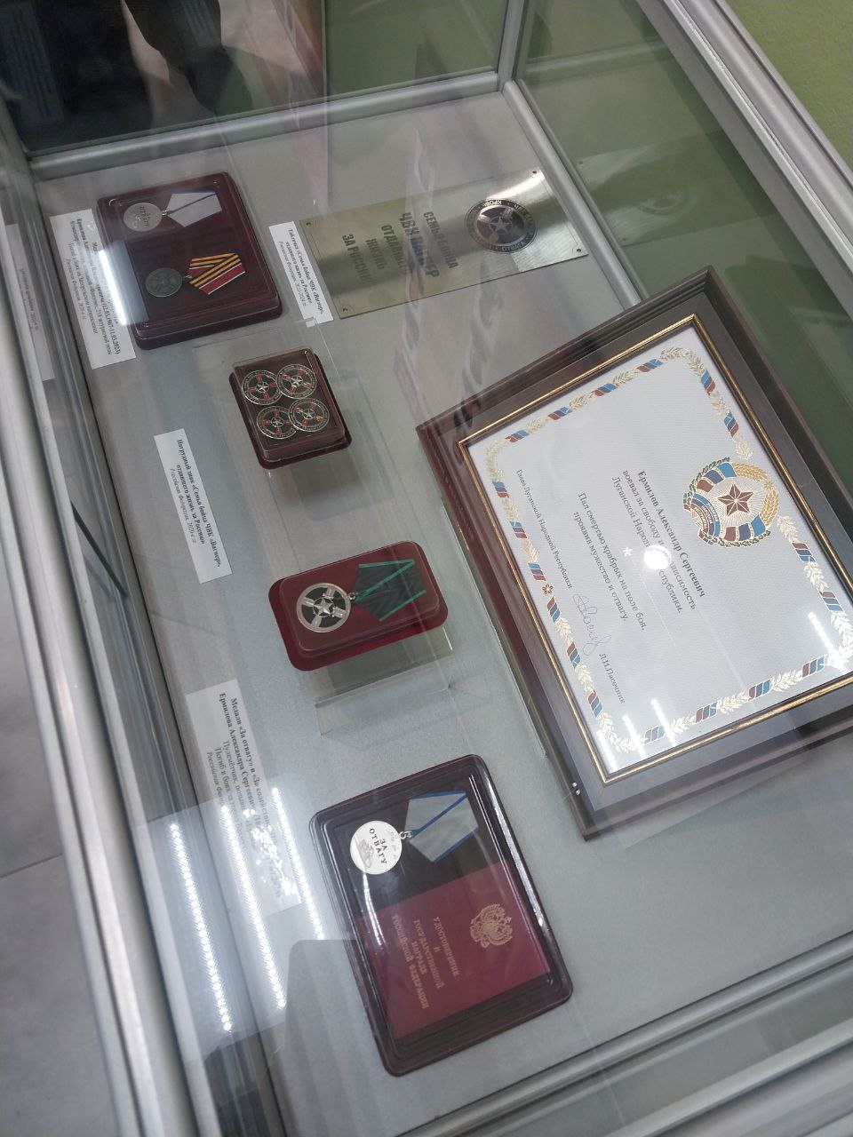 Выставка рассказывает о сибиряках, которые принимали участие в Великой Отечественной войне, Афганской, Чеченской кампаниях и Специальной Военной операции. Уникальность этой выставки в том, что демонстрационные экспонаты переданы матерью погибшего участника СВО Дроздова Валерия: это личные вещи сына, награды погибших племянника и брата, фотографии, полковые подарки, трофеи с мест боев.