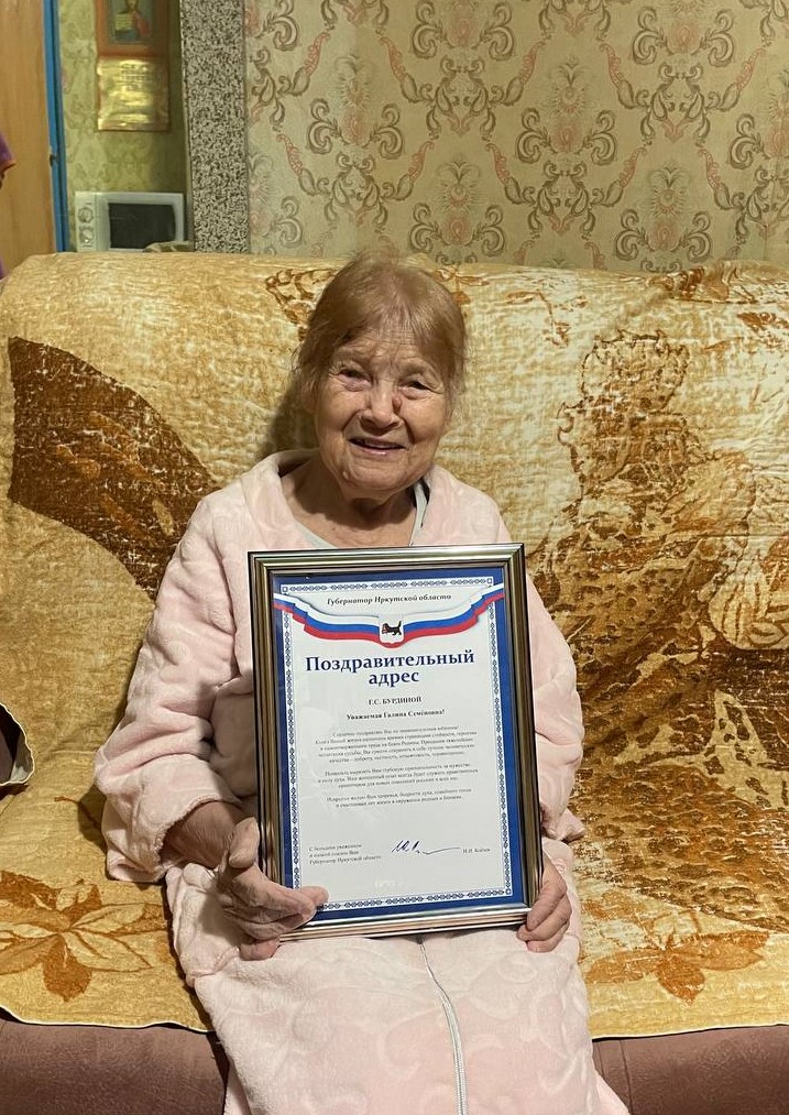 24 января специалисты ОГБУ «Управление социальной защиты и социального обслуживания населения по Усть-Кутскому району» поздравили с 85-летним юбилеем Бурдину Галину Семёновну и вручили поздравительный адрес от имени Губернатора Иркутской области И.И. Кобзева.