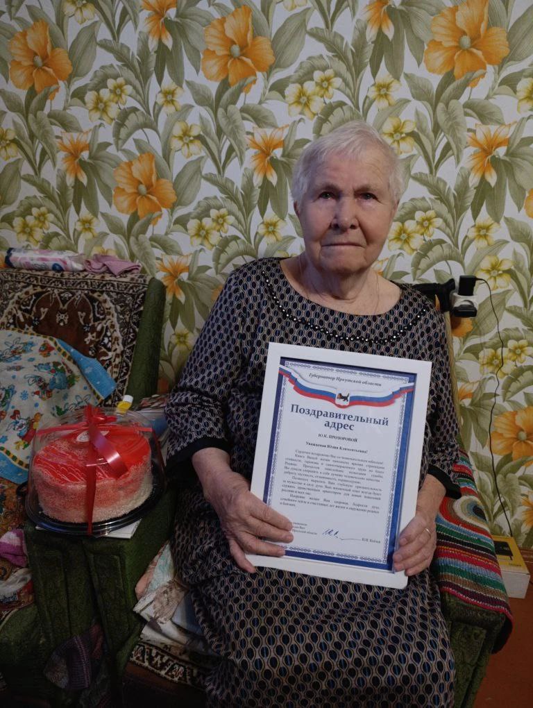 Сегодня, 14 января, сотрудники Центра помощи детям Усть-Кутского района поздравили жительницу г. Усть-Кут Прозорову Юлию Климентьевну с замечательным юбилеем - 90-летием!