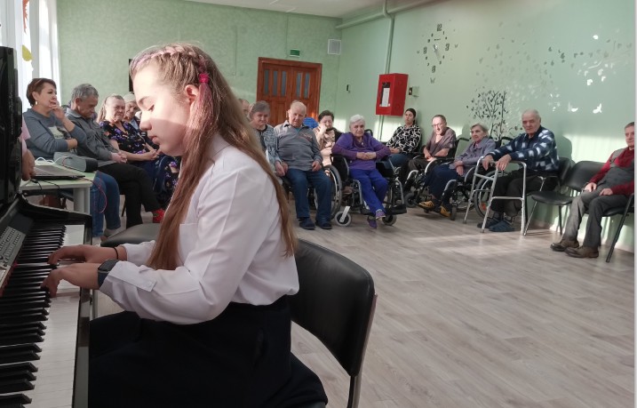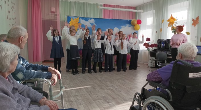 9 октября наши подопечные собрались в уютном зале и встретили гостей из МБУ ДО «Детская школа искусств» УКМО, которые подготовились поздравить дорогих бабушек и дедушек с Днём пожилого человека.