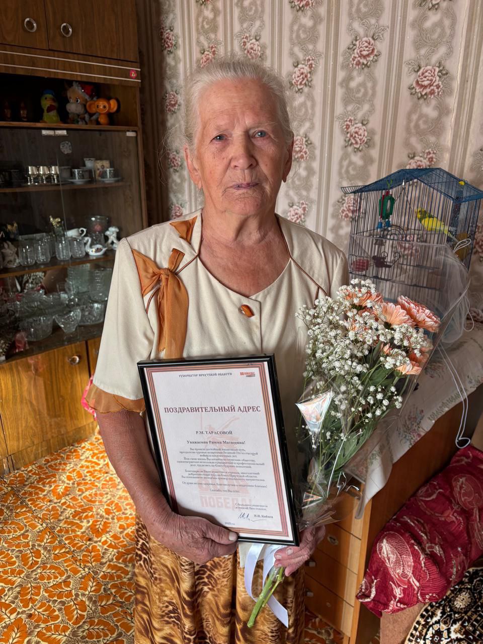 От имени Губернатора Иркутской области И.И. Кобзева поздравила Римму Матвеевну начальник отдела опеки и попечительства граждан по г. Усть-Куту и Усть-Кутскому району Красноштанова А.Э., вручив поздравительный адрес и пожелала крепкого здоровья, бодрости духа и долгих лет жизни.