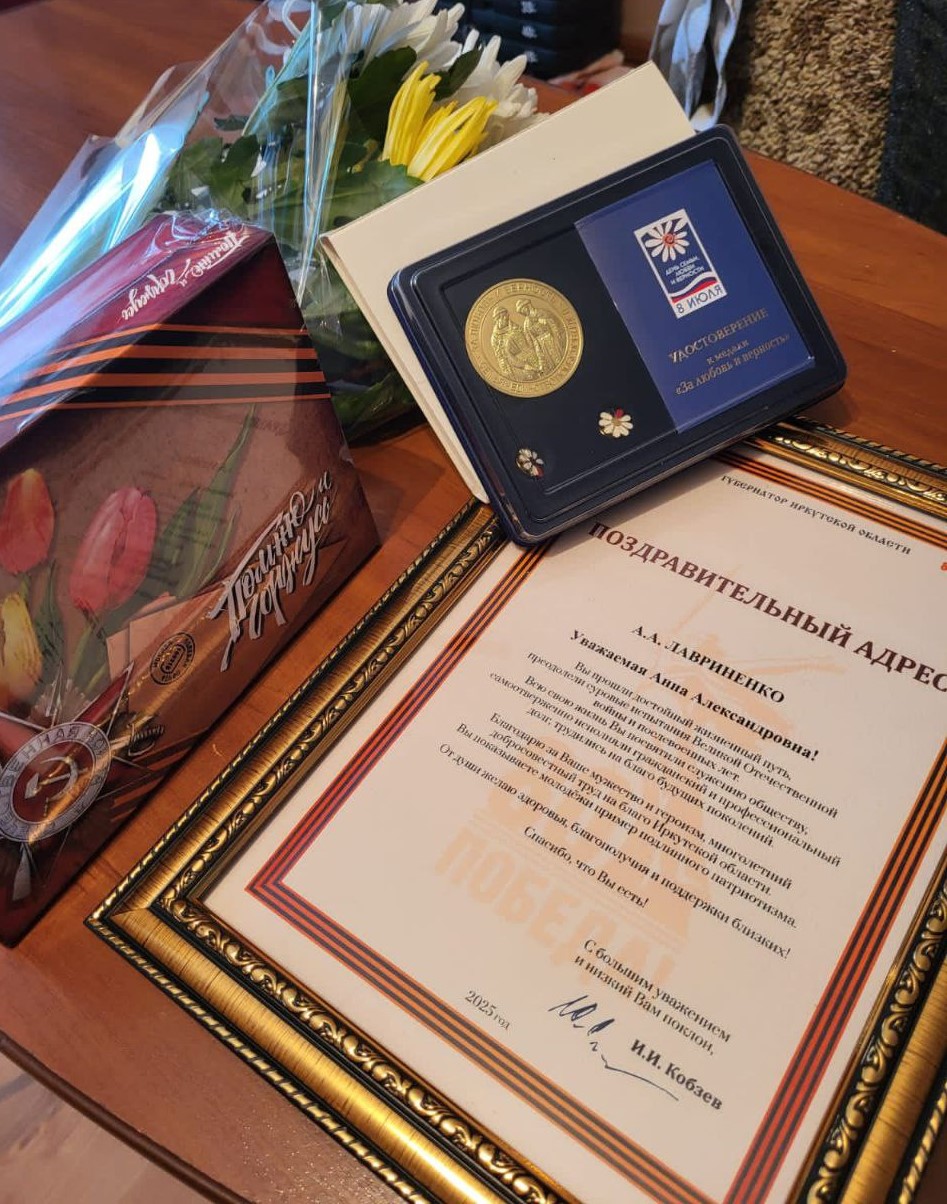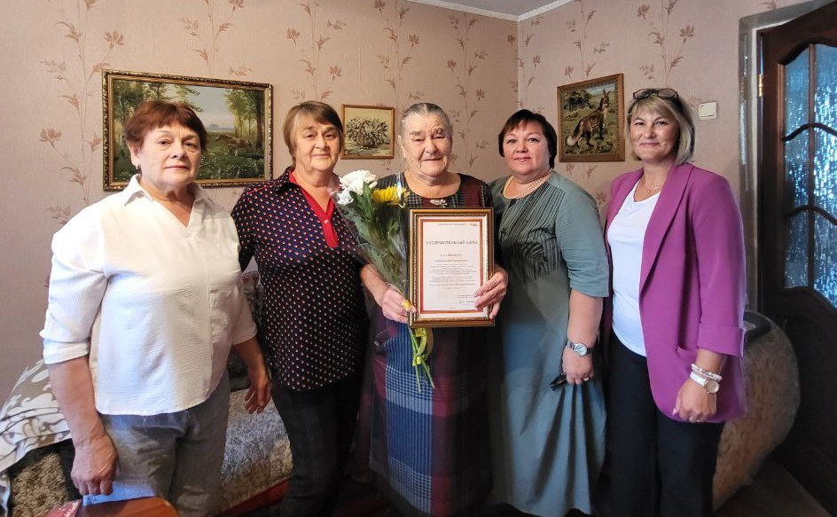 От имени Губернатора Иркутской области И.И. Кобзева сегодня Анну Александровну поздравили и вручили поздравительный адрес, цветы и подарки заместитель мэра УКМО Кузнецова Елена Александровна и директор ОГБУ «УСЗСОН по Усть-Кутскому району» Кобзева Анна Юрьевна.