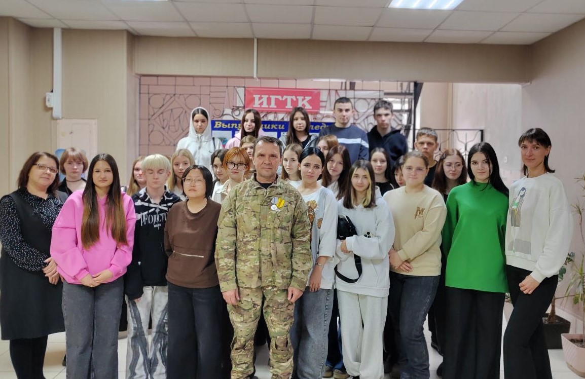 7 ноября специалистами отдела по работе с участниками СВО ОГБУ «УСЗСОН по Усть-Кутскому району» организована встреча студентов Иркутского Гуманитарно-Технического колледжа (г. Усть-Кут) с участником специальной военной операции, ветераном боевых действий - Горбуновым Юрием Владимировичем.