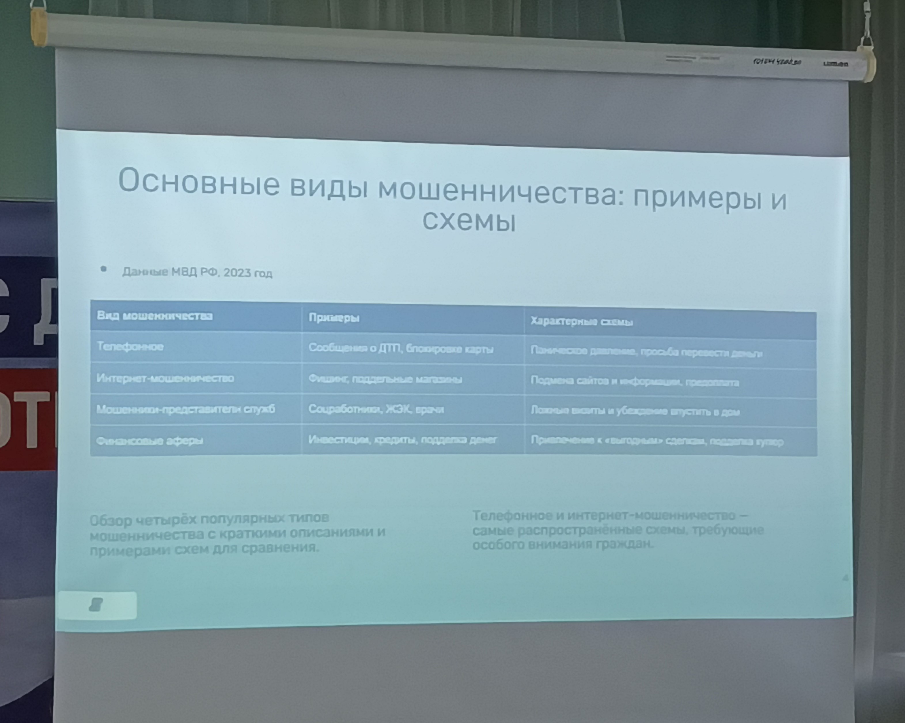 Студенты третьего курса Частного учреждения профессионального образования Иркутского гуманитарно-технического колледжа г. Усть-Кут (ЧУПО ИГТК г. Усть-Кута) организовали насыщенное и познавательное мероприятие, посвящённое вопросам кибермошенничества, для проживающих отделения стационарного социального обслуживания ОГБУ «УСЗСОН по Усть-Кутскому району».