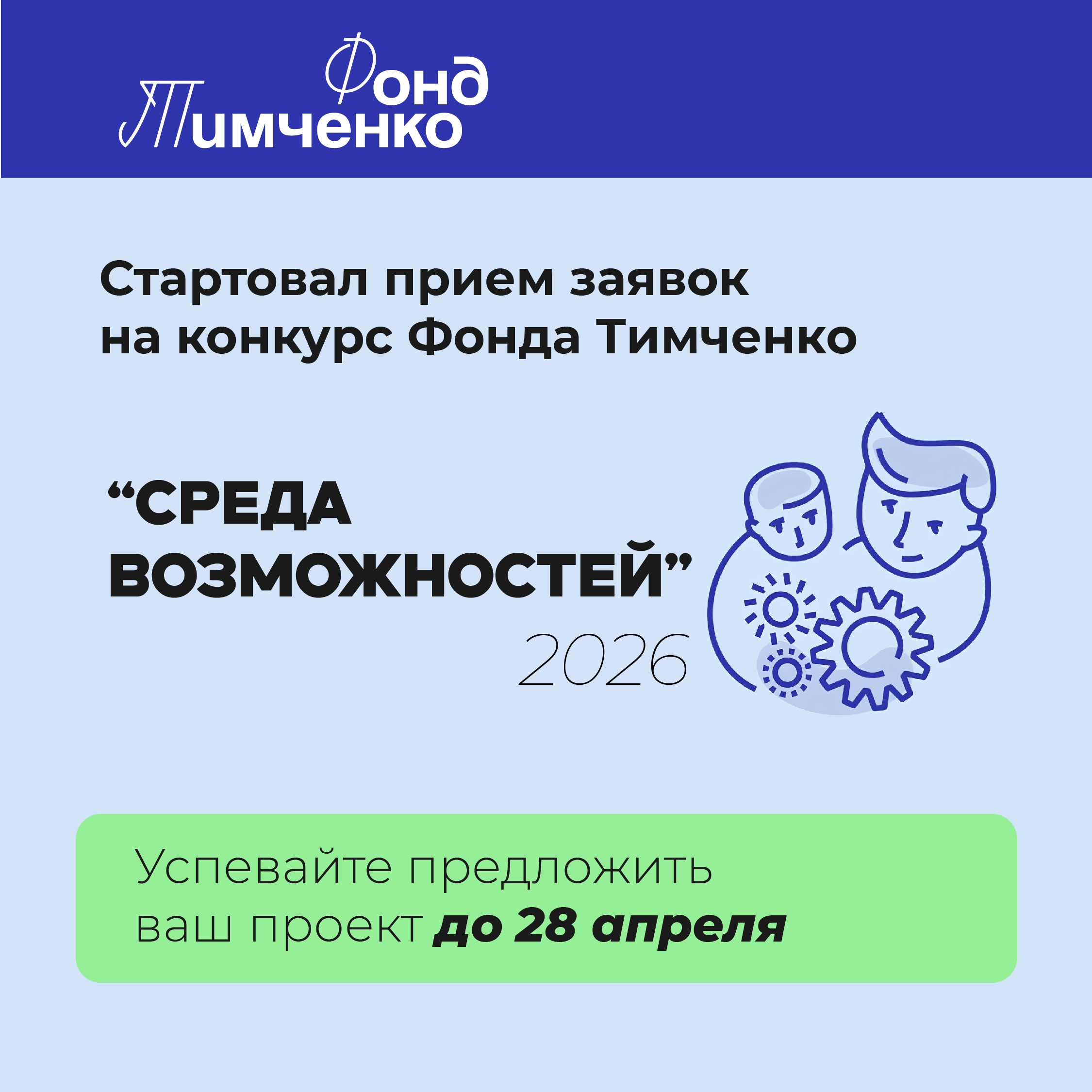 Жителей Приангарья приглашают стать участниками конкурса «Среда возможностей» от Фонда Тимченко. Он поддерживает проекты, которые помогают детям и подросткам раскрыть свой потенциал и вовлечь их в работу вместе с неравнодушными взрослыми.