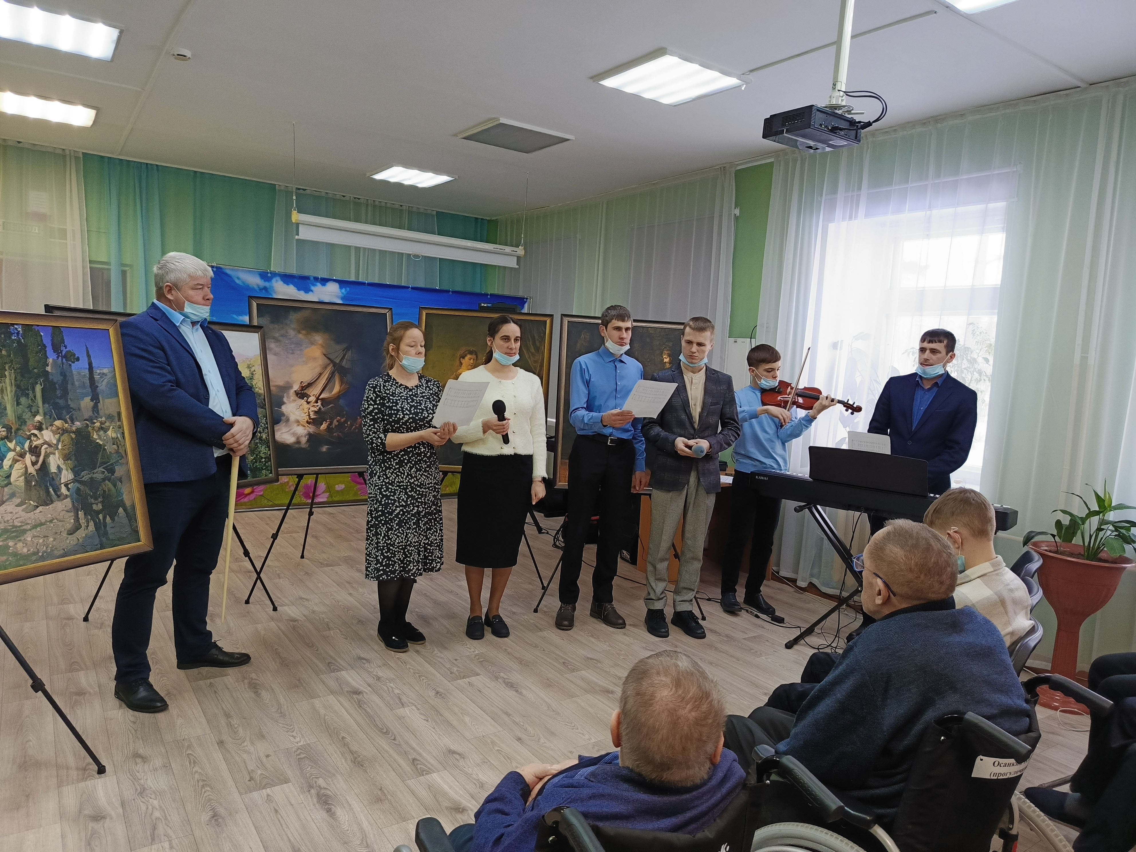 Далее последовал музыкальный сюрприз: талантливые волонтеры продемонстрировали своё мастерство игры на скрипке и синтезаторе, сопровождая хоровым пением, исполненные ими композиции заполнили помещение волшебными звуками классической музыки.